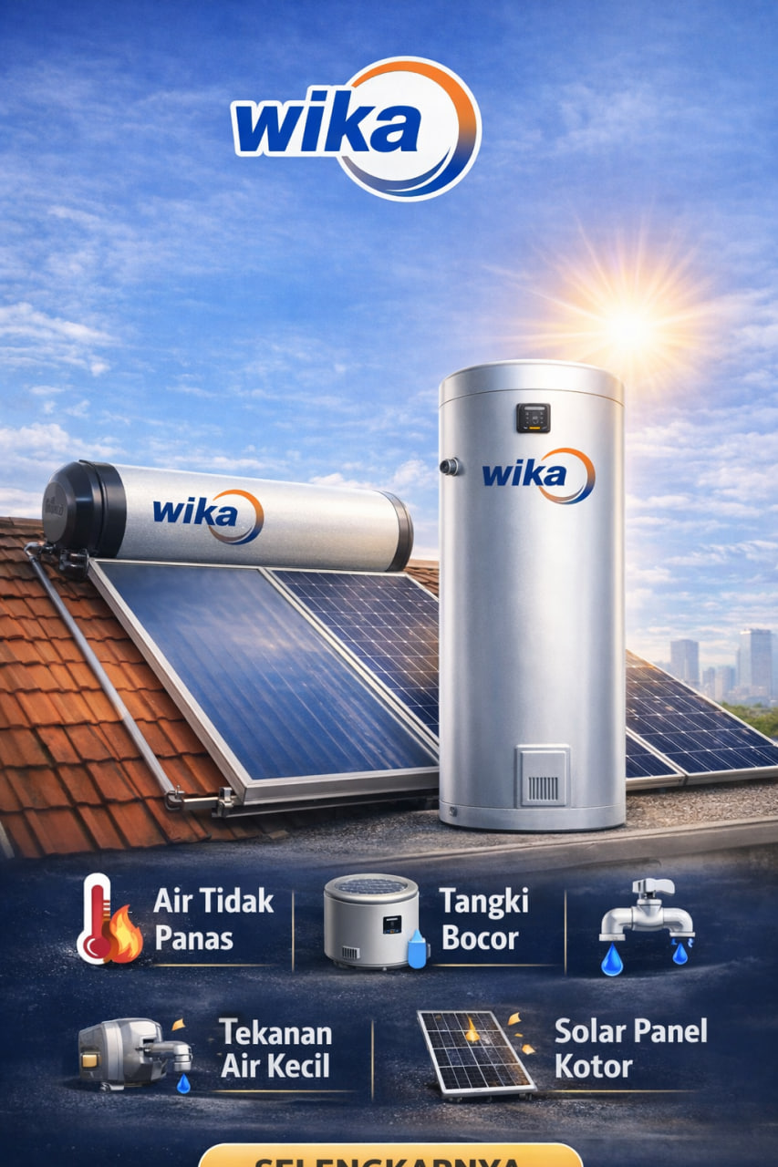 Layanan service WIKA water heater Jabodetabek kami mencakup perbaikan unit solar maupun listrik untuk kebutuhan rumah tangga dan komersial. Masalah umum seperti air tidak panas, tekanan air lemah, kebocoran tangki, atau kerusakan komponen dapat kami tangani dengan cepat. Kami menggunakan sparepart berkualitas dan memberikan pengecekan menyeluruh agar sistem kembali bekerja maksimal dan hemat energi.